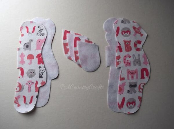 #3 將這幾個布料剪成以下的形狀,如果沒把握,可以先在紙上畫好形狀,然後對照著剪下來。