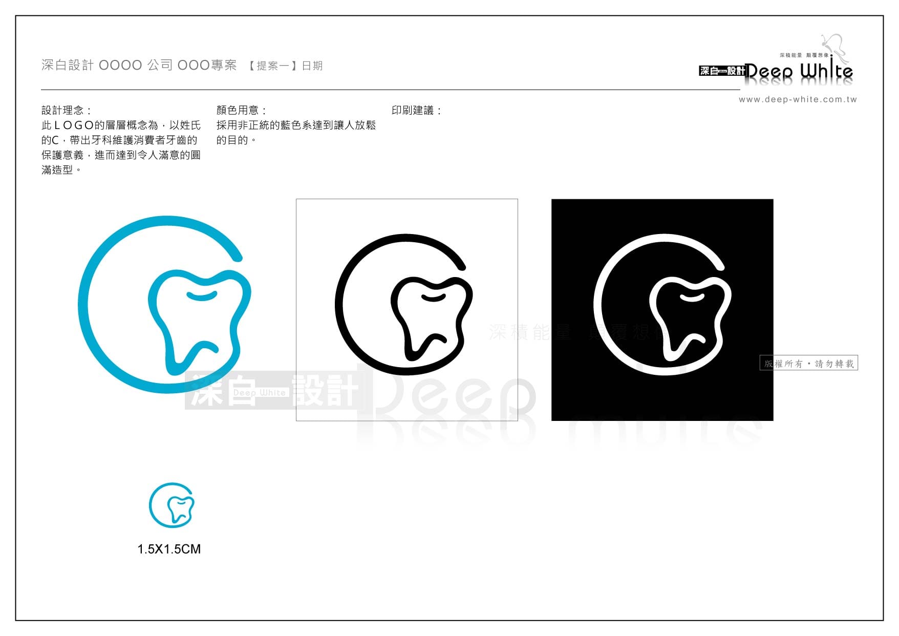 此LOGO的設計概念為,以姓氏的C,帶出牙科維護消費者牙齒的保護意義,進而達到令人滿意的圓滿造型。